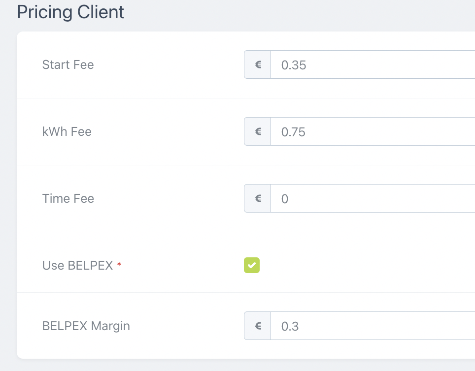 Als je dynamische prijzen wilt gebruiken, ga dan naar je beheerderspaneel en bewerk je laadsite. Scroll naar beneden naar "Pricing client".